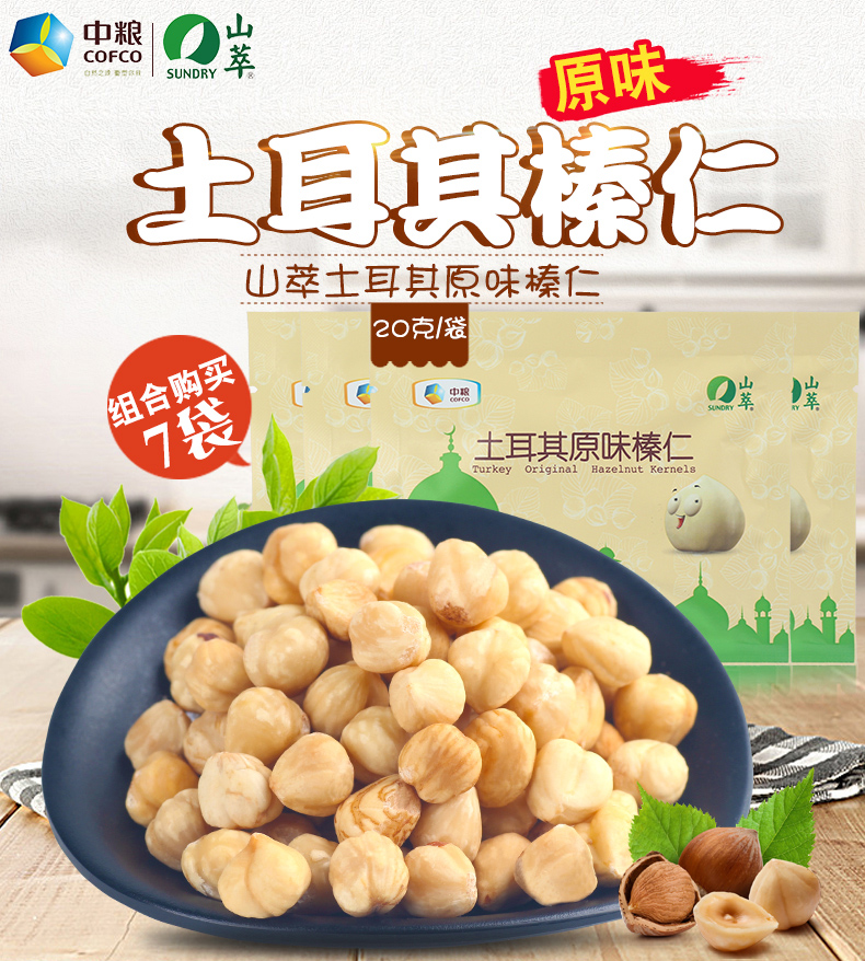 中粮山萃土耳其原味榛仁20g*7袋 原味榛子仁坚果零食